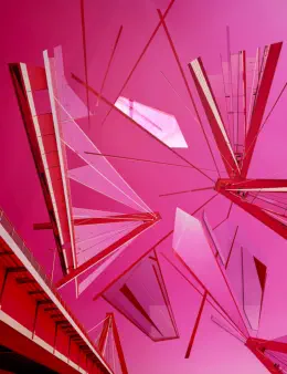 Dispersion, Metallrahmen aus Stahl oder Aluminium, Transparentpapier und Nägel. Es sind